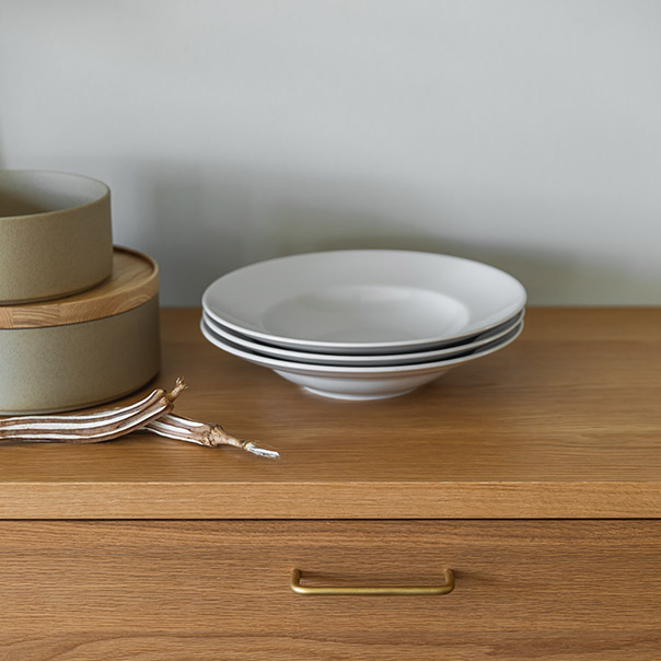 - ゆっくりと成長するオークは家具素材となるには樹齢100年以上がほとんど。長い年月から生まれる美しい木目が魅力で、虎斑(とらふ)と呼ばれる虎の斑紋のような模様が現れることも特徴です。柔軟性があり水を通さないことからウイスキーやワインの貯蔵樽としても利用されています。